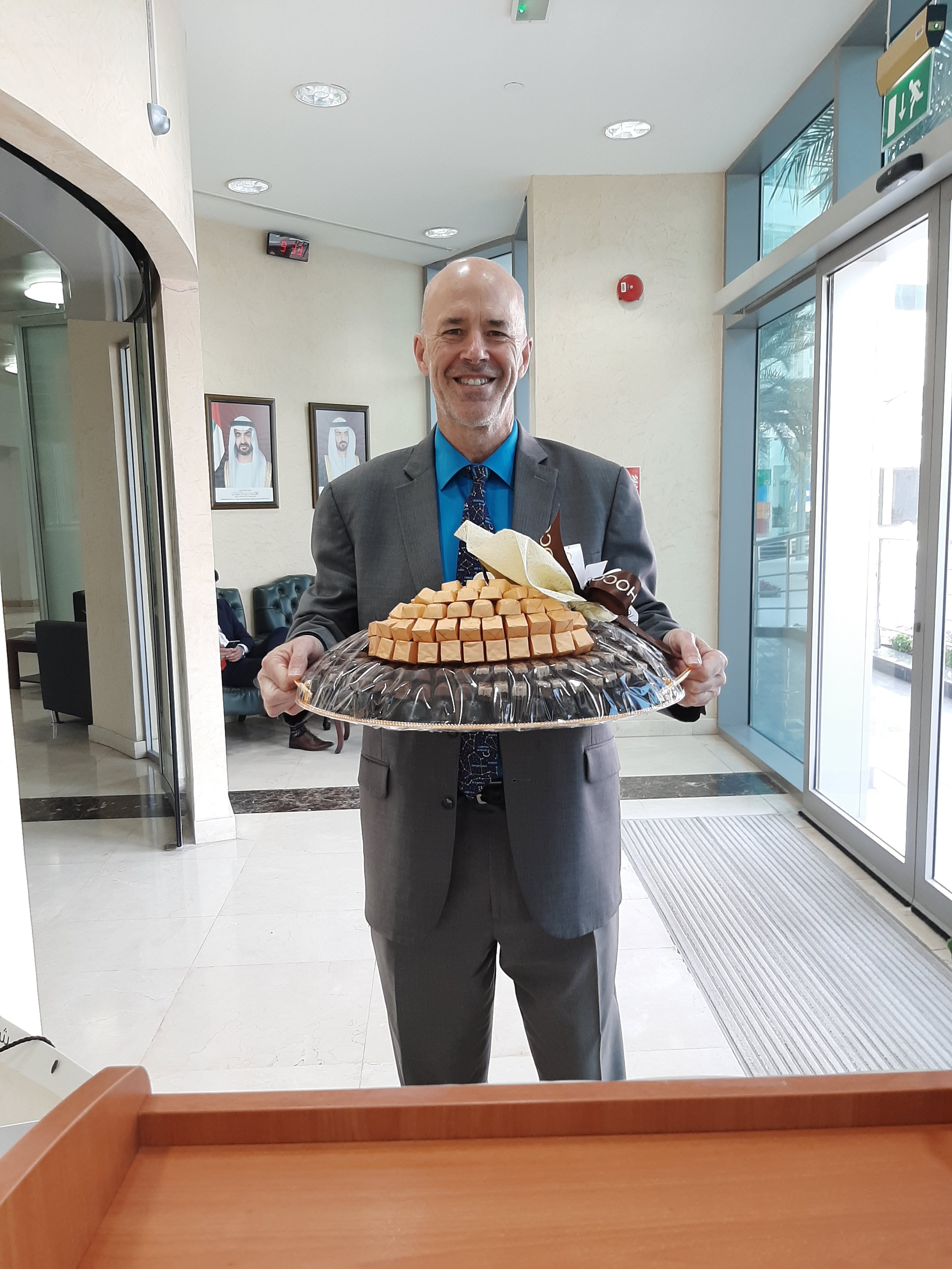 In the Arabic world, gift giving is very important in personal and professional relatonships.. From what I have read, Islamic traditions based on the sayings of the Prophet Muhammad (Peace Be Upon Him) also encourage people to give one another gifts to maintain harmony and good relations.One of the very special things I observed living in the Middle East was that when something good happened to someone, they often brought large arrangements of chocolates to share.These occasions often were a child being born, graduating or sometimes just getting a high score in an exam. I worked as a director of a program in a university, so my observations are based primarily on that. It could be a colleague celebrating their child’s graduation from a university.I do not know the origin of this tradition and did not find reference to it online, but I found it wonderful!Typically in the USA (my birth country), when a big personal even occurs we receive gifts. With that in mind, I loved the reverse approach…when something good happens, you bring the chocolates. The way I interpreted it was that one is giving thanks for their good fortune or blessing.The giving of chocolate is a big industry in the UAE. There are rows of stores with chocolate spectacularly arranged on huge plates. One could spend several hundred dollars on such a display. The displays weigh quite a bit. At my university, one of the workers would take the chocolates from office to office sharing the good news of a professor or another employee. I preferred to deliver mine in person as it gave me the opportunity to catch up with everybody.I had the joy of doing this on two occasions. First when my twins were born and second when I was leaving the university (on a very positive note). I was able to deliver chocolates to many departments, faculty and students. It led to many nice conversations. Indeed I am blessed.If you do visit the Middle East, visit a chocolate shop. If not, try it where you are. I promise you will enjoy the experience as will others.