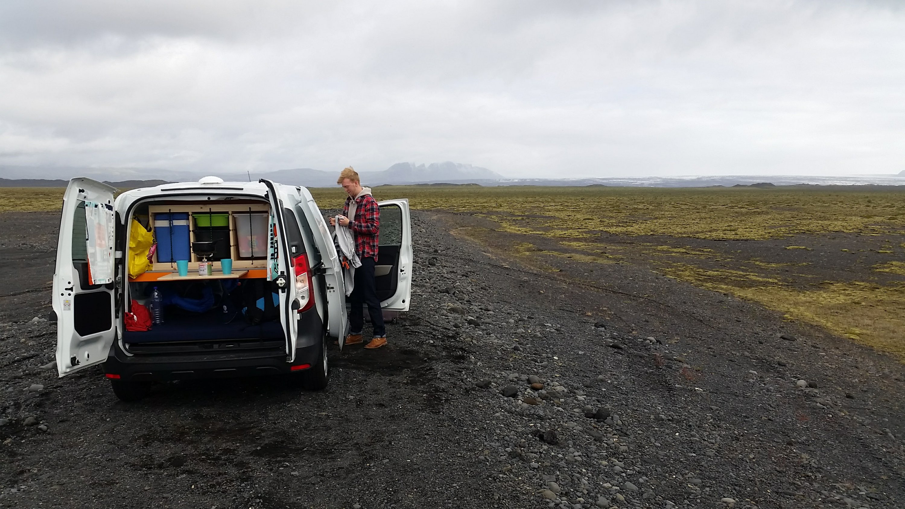 When we started planning for Iceland, it started to become clear that it was extremely expensive. Renting cars and lodging were both pricey. I hadn’t seen how expensive the food was. Somehow I discovered there were vans you could rent to drive and sleep in. Seemed like a good solution. In the end it was an outstanding decision. So we planned to go around the perimiter of Iceland in about a week.