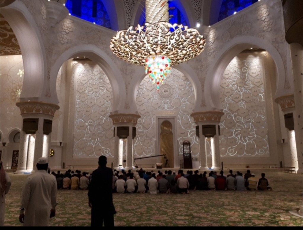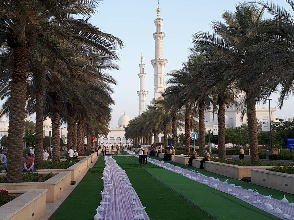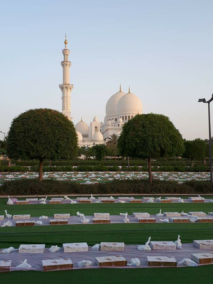 Iftar is meant to be shared with others in the community, families and friends. There are iftars in all of the restaurants as well. Always amazing feasts. People are very ready to eat to say the least. Many times fill their plate and then wait for the moment to begin eating. Great discipline. The Sheikh Zayed mosque does a huge iftar for the public, primarily laborers that have little money. They do this every night and I have read it is 10,000 meals per night. Zakat, or charitable giving is also one of the five pillars of Islam and this is an example of that.