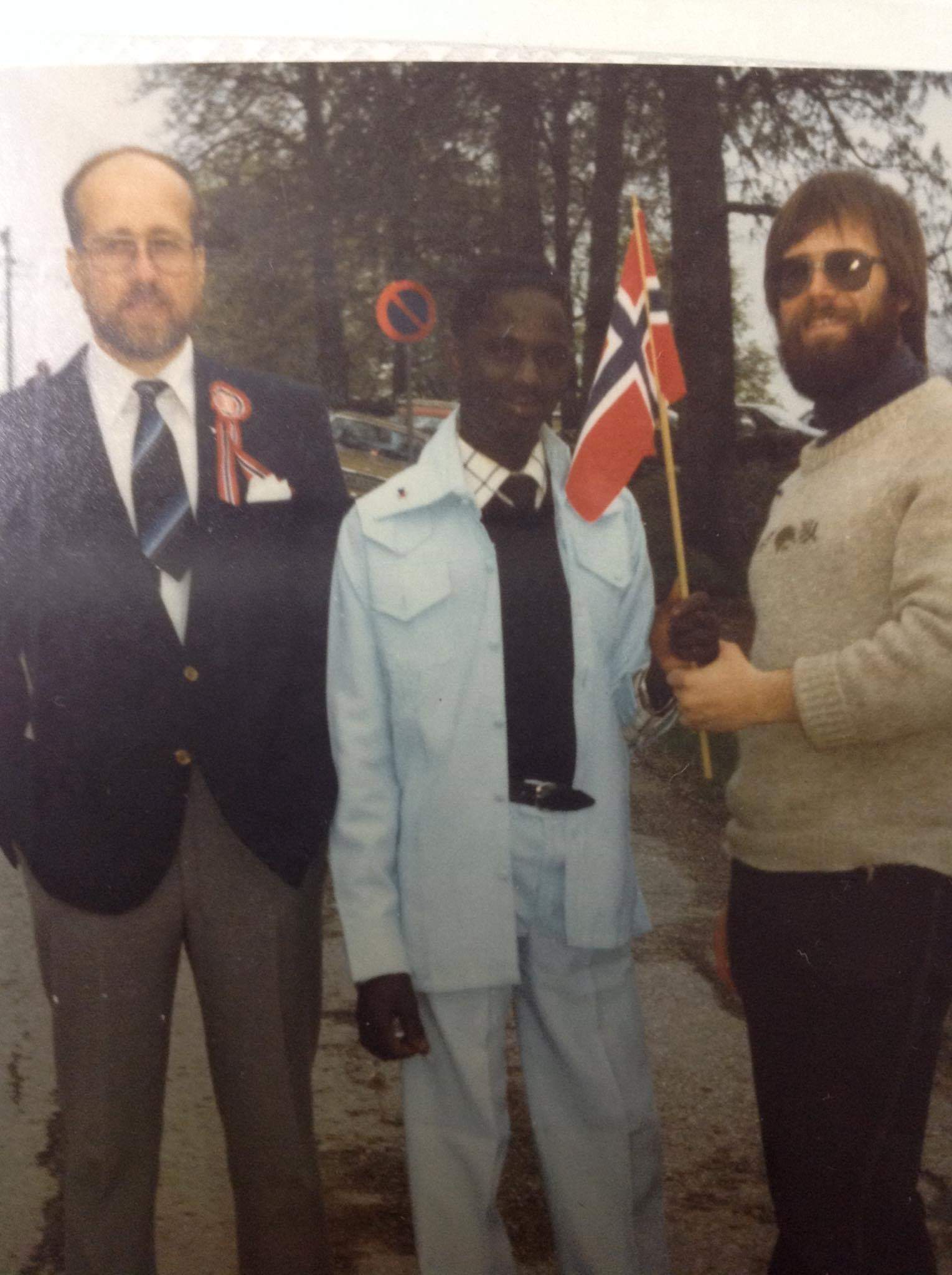 Celebrating Norwegian Independence Day wit Per-otto Haaje, the farmer and Musa Jaby my work colleague from Gambia