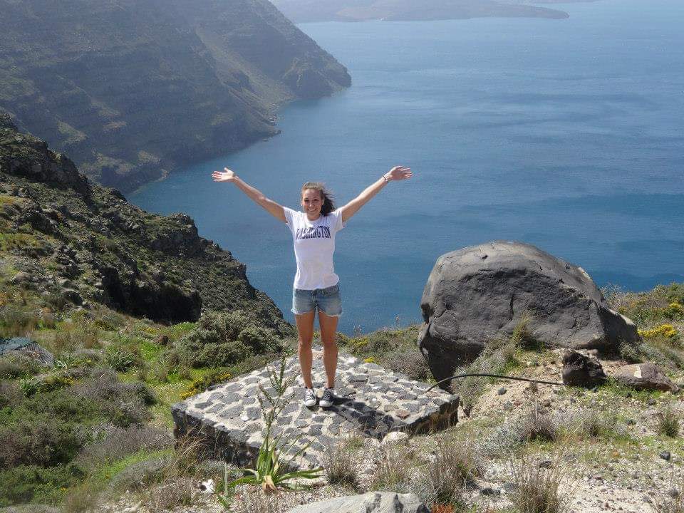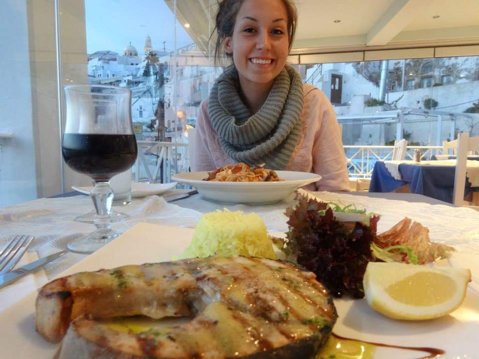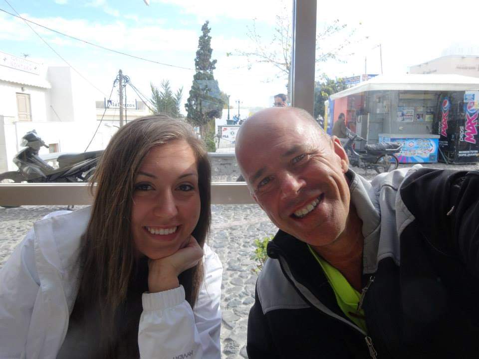 We allowed each day to develop on its own and I so much enjoyed just being with Sierra. One day we took a long walk along the ridge of the caldera (it is a volcanic island and you re on the edge of a crater). The scenery is breathtaking and the white and blue houses are picturesque seemingly hanging off of the cliffs. We took a lot of photos. If I am not mistaken we took a taxi back home. Another day we rented a motorcycle and went to a beach where some good waves were breaking. One night we took in a magnificent dinner while dining. The entire wall of the restaurant was glass so that you could view out over the water. There were few people so it felt as if it was ours. What a special thing to share with one’s daughter.