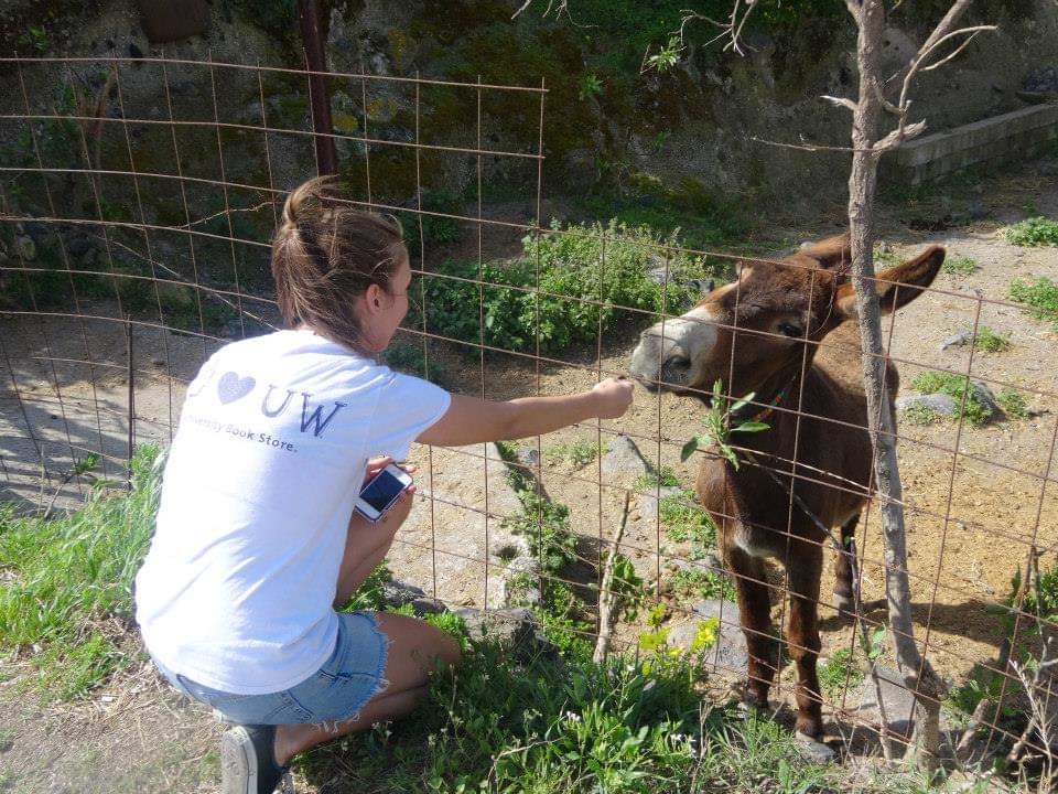 We decided to take a boat trip on an old wooden boat that went over to a volcano. We were told there were hot springs you could swim in. It was chilly in general. The boat anchored quite a ways off shore and they said you had to swim to shore where the thermal springs were. Sierra dove in and quickly came back up screaming the F word. It was very cold. That’s my girl! We also took a nice hike around the volcano before returning back to the donkeys that carried us up the zigzag rode to the top of the ridge and town.