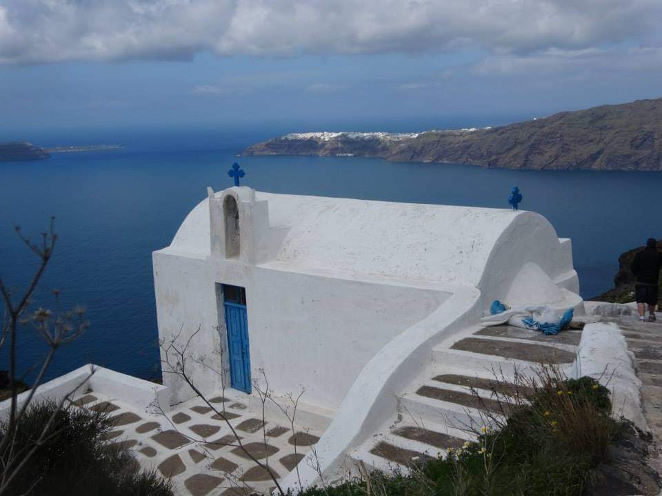 The area around the Acropolis was excellent for walking at night as there were many shops and nice night views of the Acropolis all lit up. We flew from Athens to Santorini. Santorini looks a lot like the beautiful photographs that one sees everywhere, but even more striking in person. The end of March was a bit chilly but a good time to be there as there were few tourists. We were told of the cruise ships that come in and the busses that completely block the roads. We were able to get a little bed and breakfast not far from town and we enjoyed it a lot. The breakfasts were brought to us on a tray each morning and were something to look forward to. Delicious. It was a good life.
