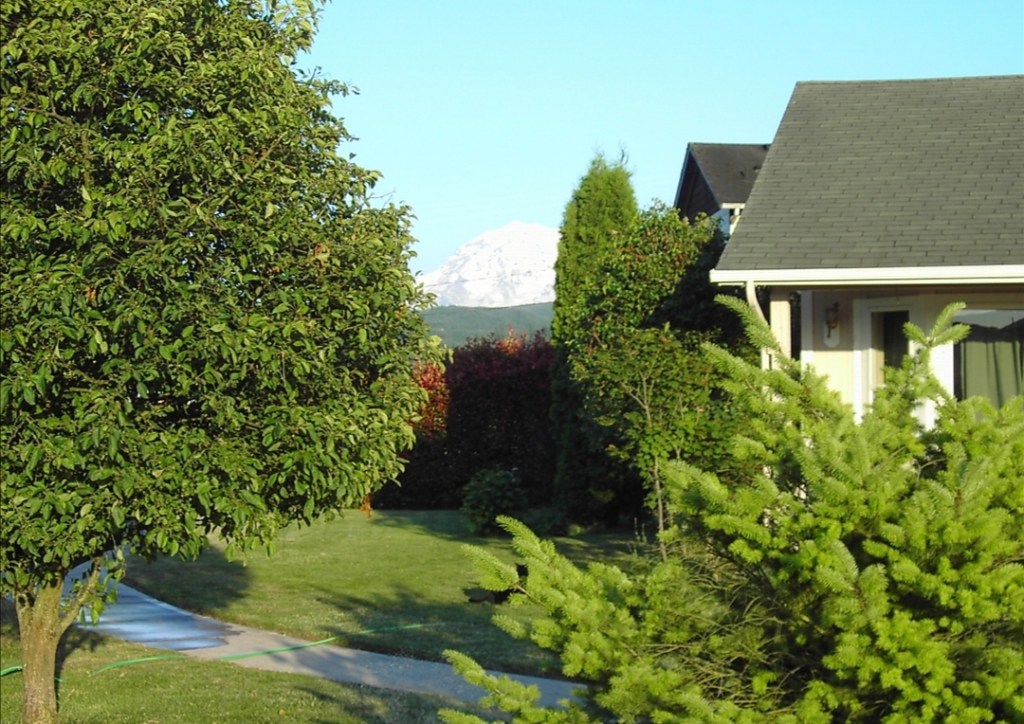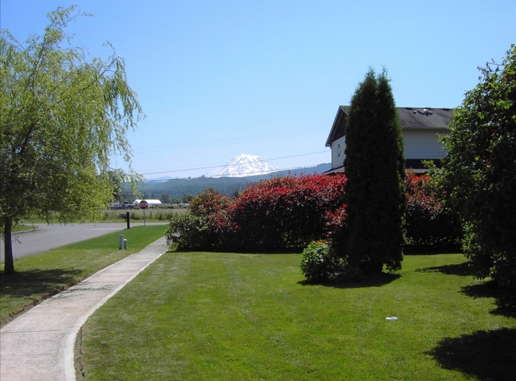 The sidewalk I carried Sierra on. Mount Rainier in the background