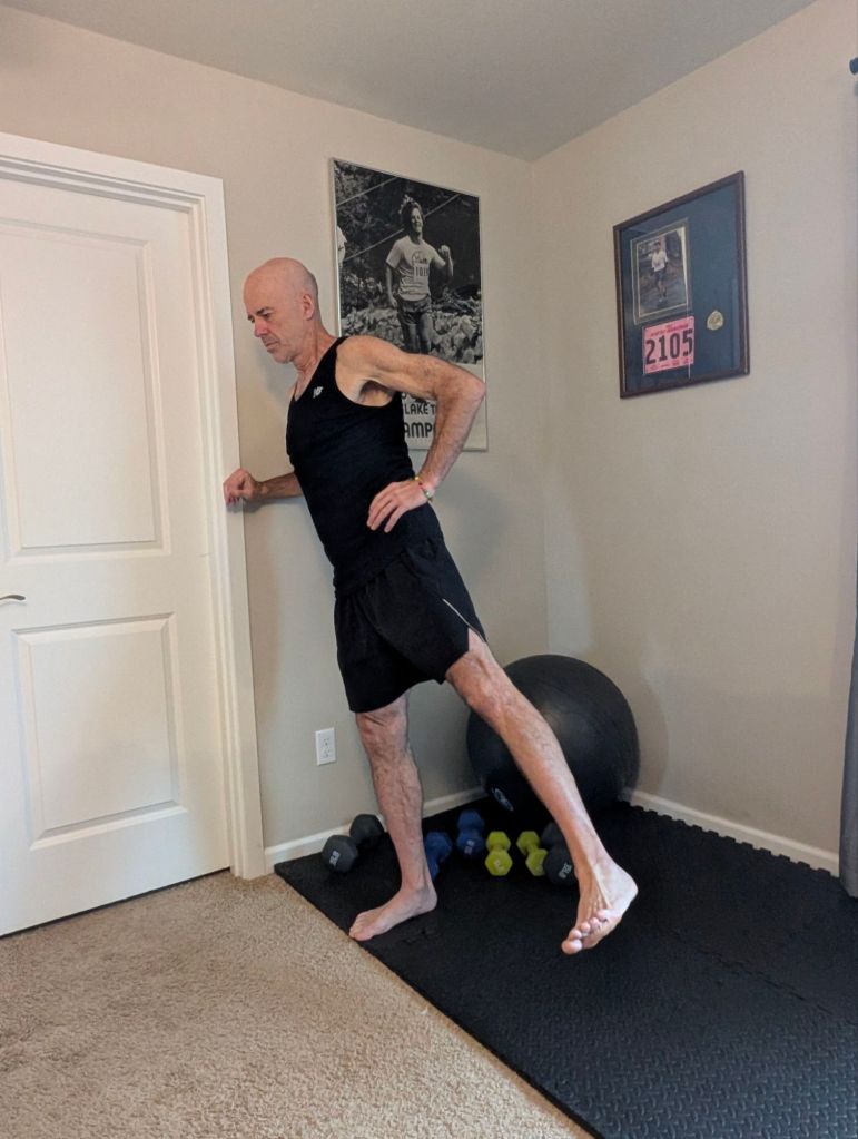 - Stretch my calf muscles and Achilles tendons leaning against the wall.