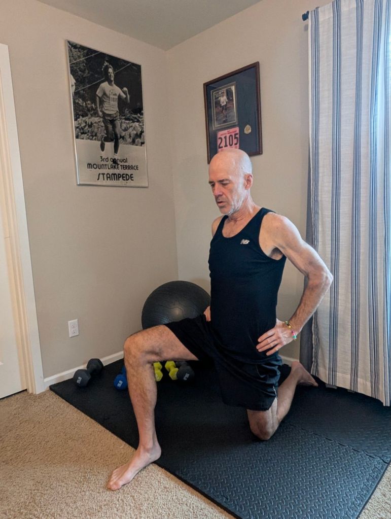 - Stretch my hip kneeling on the floor (flexibility, range of motion)